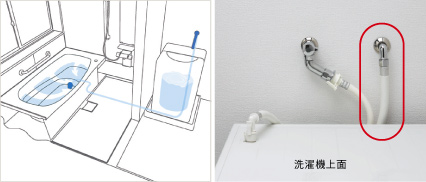 あらかじめ専用配管で浴槽と洗濯機を直結。
