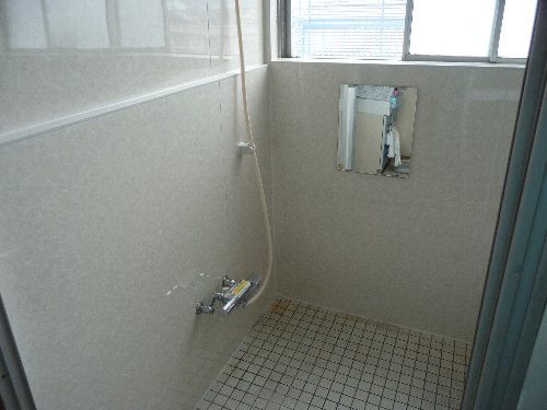 ★ 浴室の壁に浴室用パネルを張りこみ、木部にペンキで塗装しました。