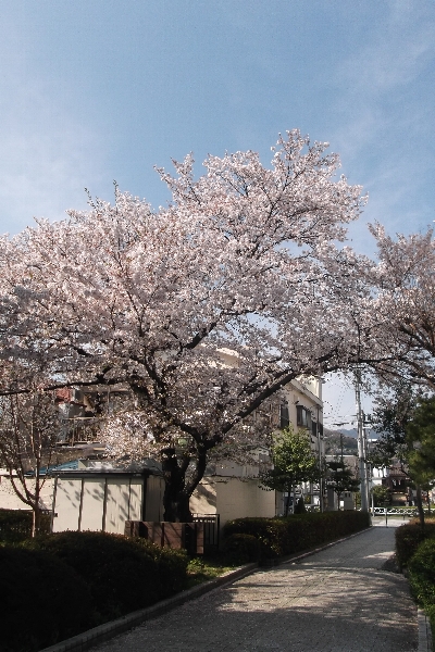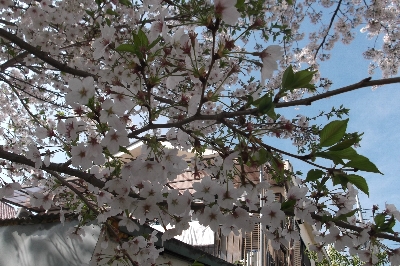 裏の公園の桜が満開から少しずつ散り始めました。
