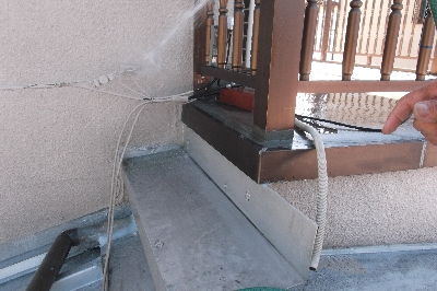 大雨で天井裏から天井に水がしみ出てきましたが、ぬれている場所を探すのに、豪雨の時には屋根に上れないので、晴れた日にホースで水をかけながら探しました。漏水の原因は壁のヒビ割れと豪雨の場合の屋根からのはね返しでした。