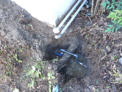 道路に染み出るくらいの漏水で、掘り返してみると古い配管が割れていました。