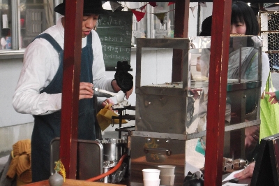 色々なお店が並んでいて、特に印象的だったたい焼きやさんオープンから私たちがかえる午後1時半まで、お客様の列が途切れることはありませんでした。
