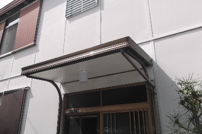 漏れ箇所を処理して庇の下の部分を取り替え、照明器具も新しく取り替えました。
