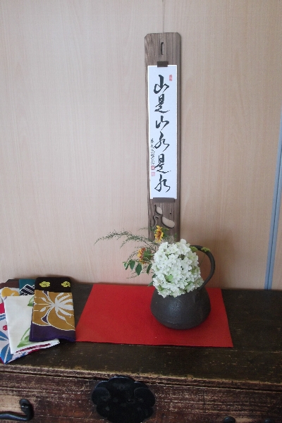 先日、ある方から私に贈り物がありました。 せっかく頂いたので、お店に飾りました。 写真のように、お店に飾ってありますので見に来てください。 書いてある文字は『山... -