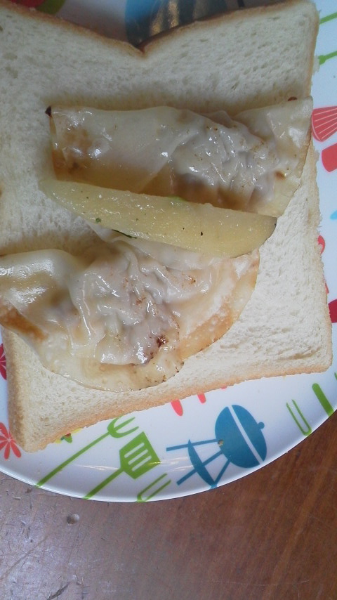 野菜のサラダなど食パンに挟む具材の横で、昨日子供たちで作って夕食で食べた餃子が片隅に寂しそうにありました。
