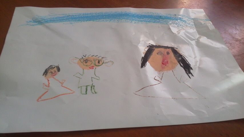 昨日、家に帰ると絵が3枚テーブルの上に置いてありました。 見ると一枚は、長男が書いた妻と私でした。 女の人が2人いるので、 『こっちは誰?』 と聞いてみると 『おか...