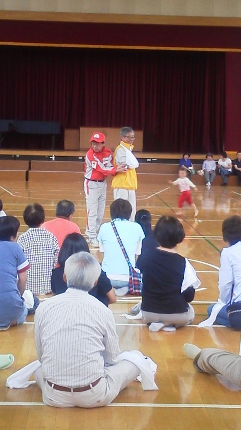 生憎の雨で、予定を変更して小学校の体育館で行われました。