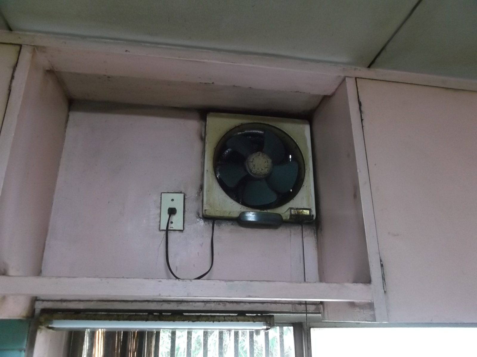 工事中 換気扇を取り外したら油がいたるところについていまし