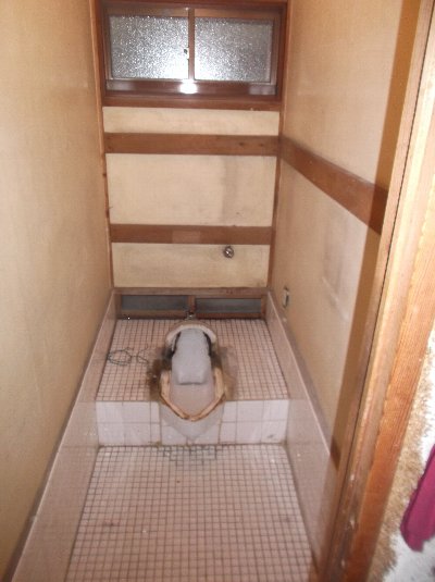 解体の時に簡易洋便座を外すとその中からは、汚れた和式トイレが現れます。
