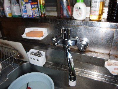 その現場では、給湯の配管工事をしましたが、一緒に台所水栓の取替も行いました。
