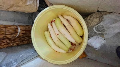 午後からは少し調子が良くなり実家に行くと母がたくあんをつけていました。