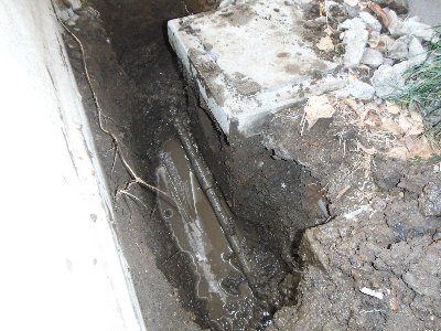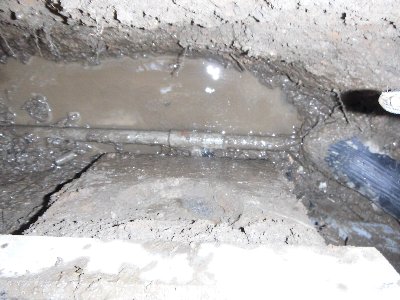 今回の漏水の原因ですが、コンクリートの排水マスが重さで下がり給水管を壊したと思われます。