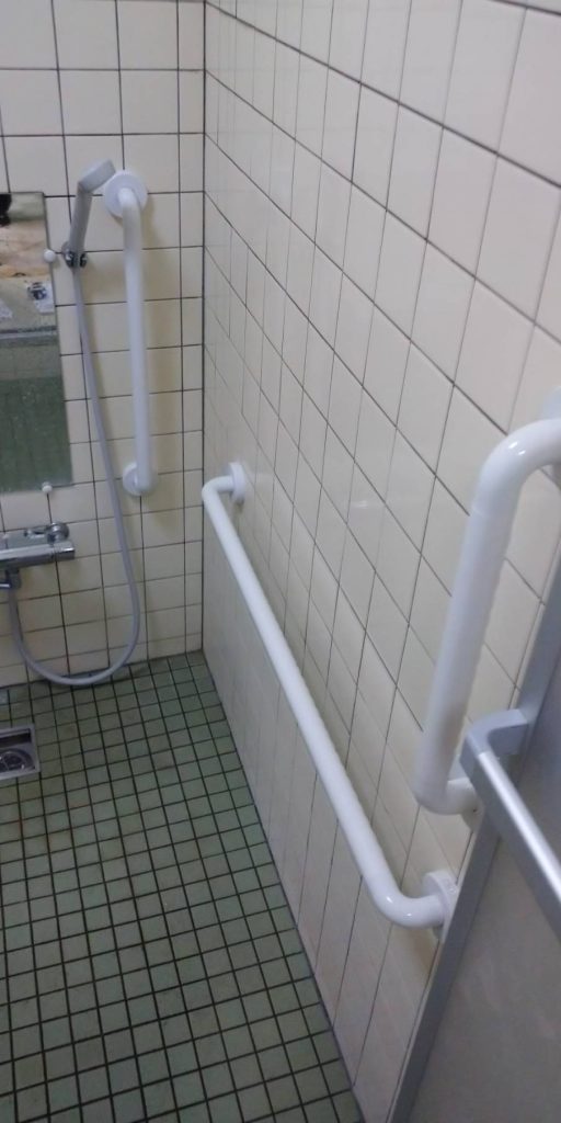 こちらのお客様は お風呂に手摺の取付と浴室の開き戸を折戸に交換させていただきました。