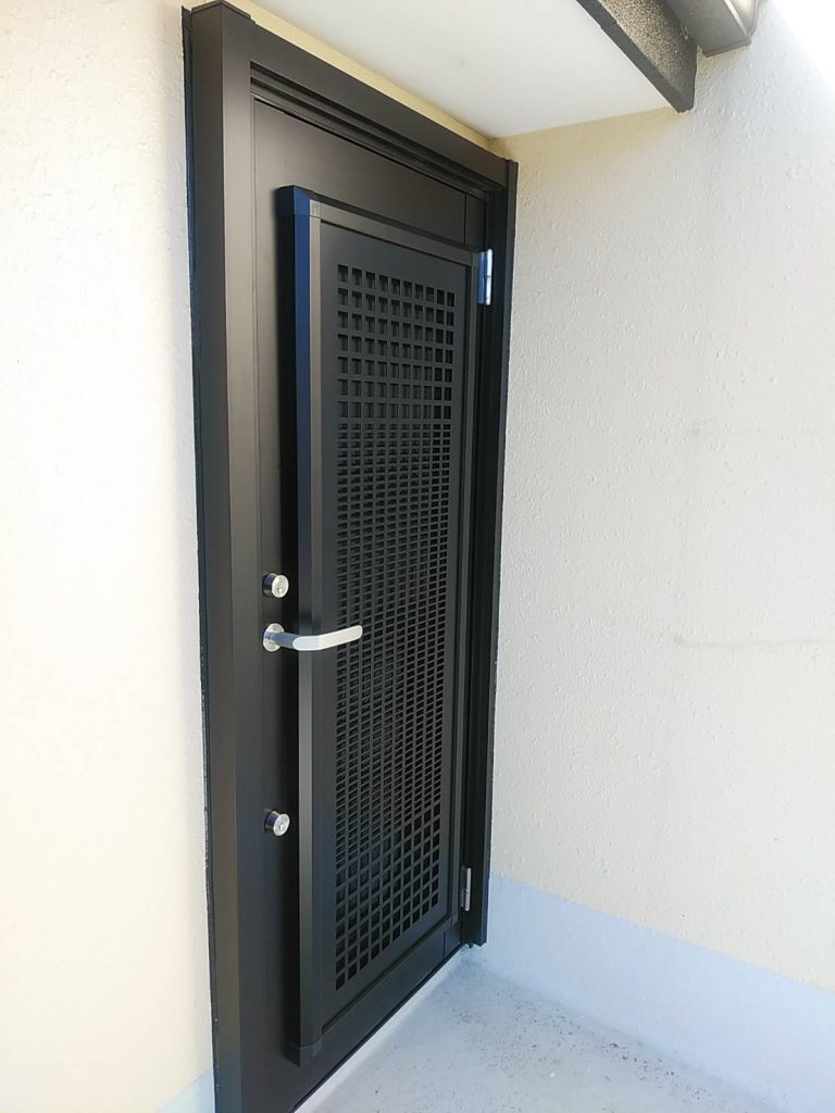 防犯対策も気になるところですがダブルロックが標準装備なのと、面格子は外から手が入れられない細かい格子のパンチングをお選びいただきました。