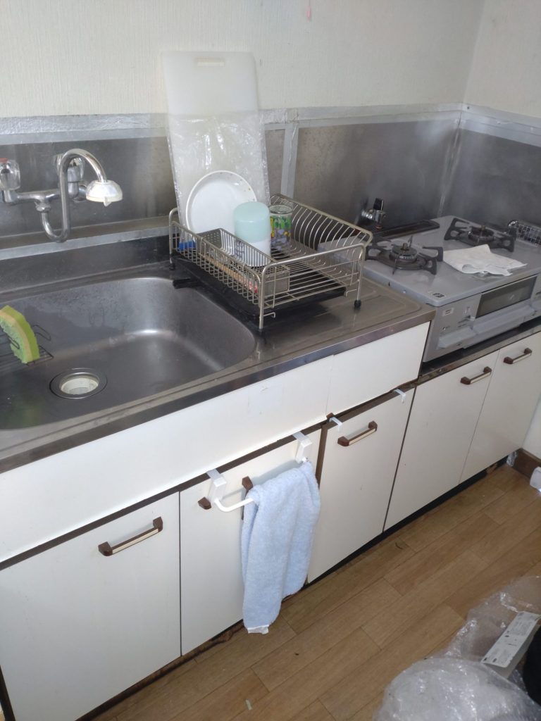 キッチン排水水漏に伴うキッチン取替
