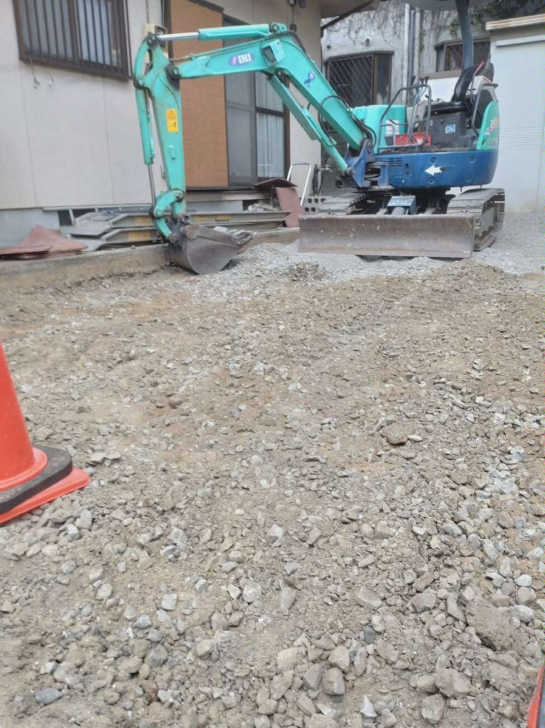 今月は駐車場の整備をさせていただきました。 土の駐車場から小石や泥水が道路に出てしまい地域の方に迷惑をかけたくない。とのご依頼です。