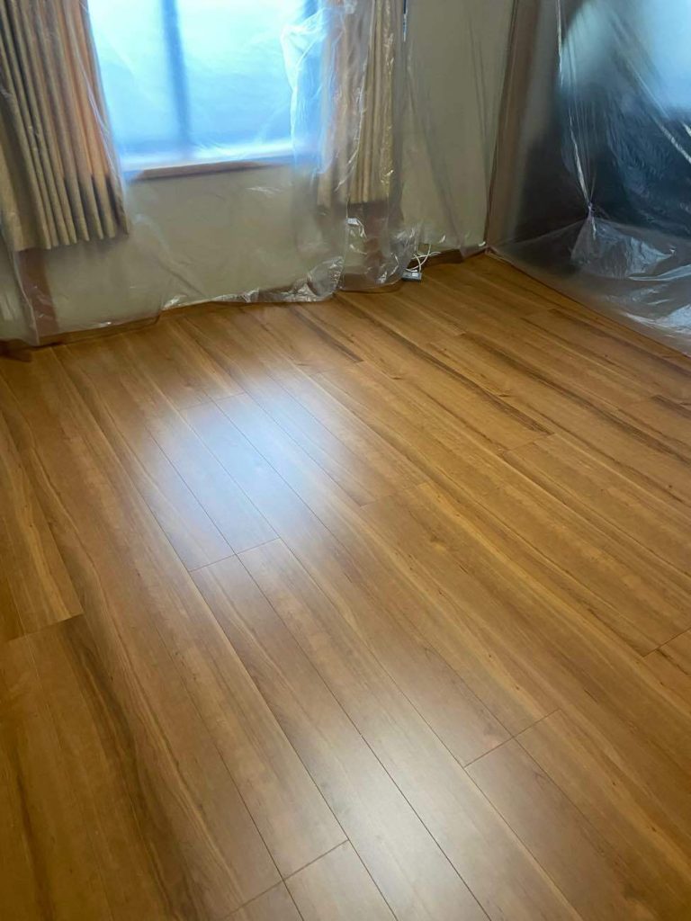 完了です。 1階と同色の床板を使用して雰囲気も似たような感じになりました。お客様からもよくなったよとおほめいただきごきげんで終了いたしました。