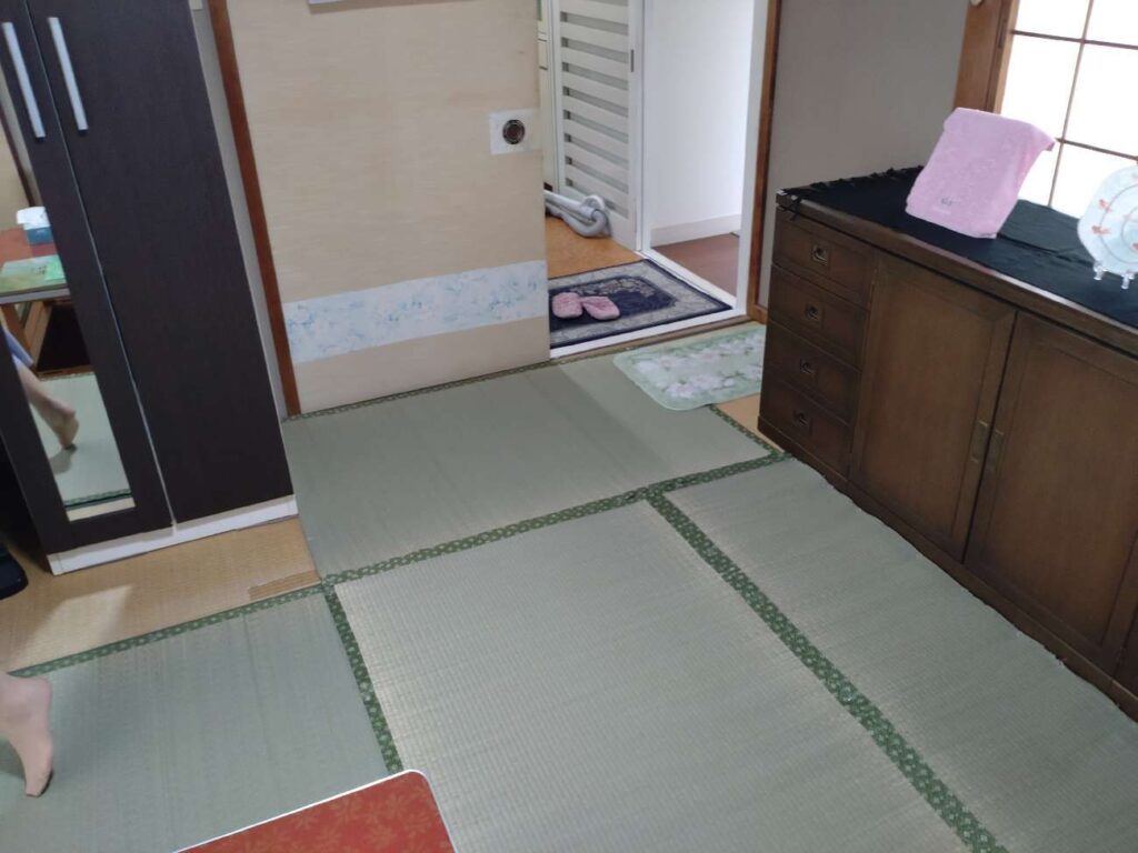 和室(゜-゜)…最近は洋間へ改修するお客様も少なくありませんが日本の風土や災害に合わせて作られた理にかなったお部屋です。特に畳は 調湿良し! 断熱良し! 防音良し! ごろ寝良し! 雰囲気良し! 地震時は家具のずれを防止するストッパーにもなってくれます。 和室推進派の私としては畳新調や襖、障子の貼り替えの問い合わせが来るだけで今回はどんな畳や襖を提案しようかとわくわくしながら現地確認に向かいます。