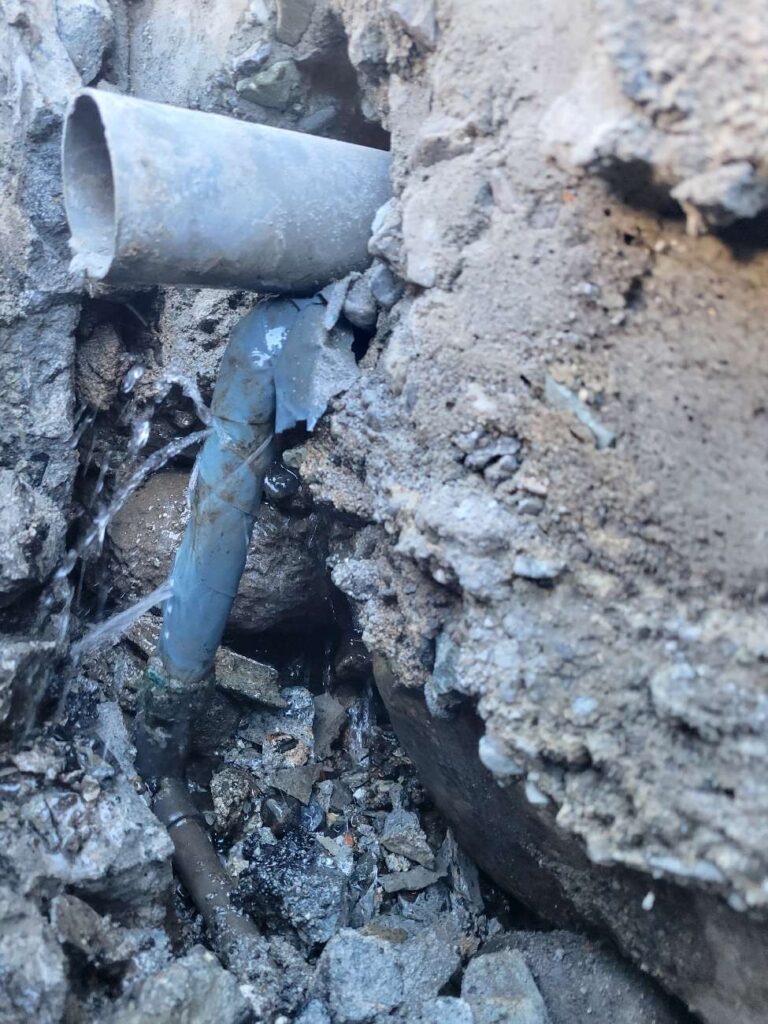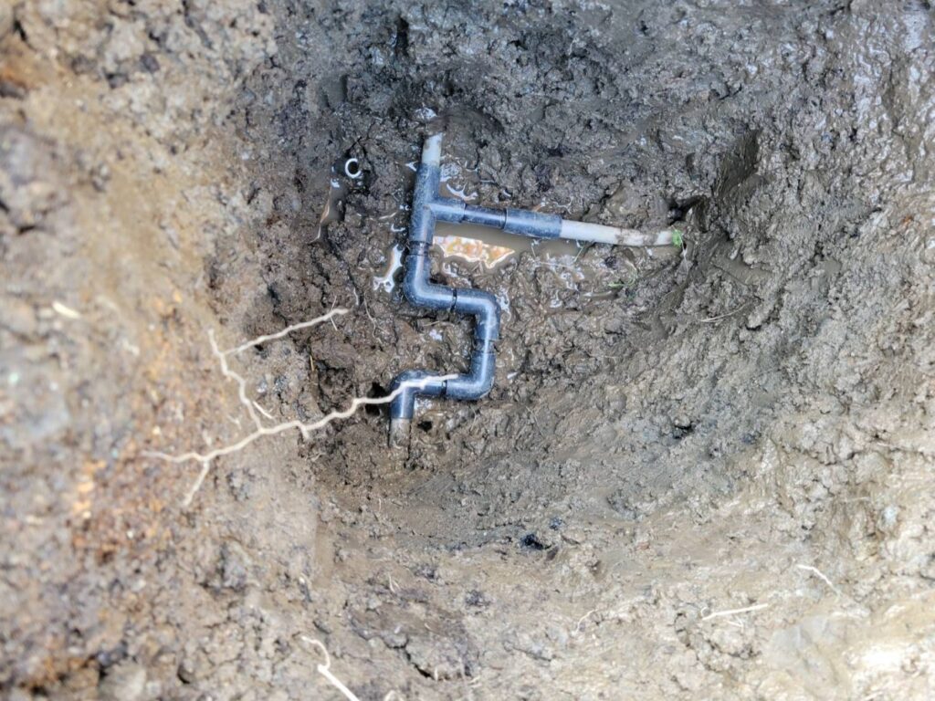 二件目は外水道の地中配管から漏水。VP管は継ぎ手部分から漏れやすくこちらは30年くらい経っている配管でした。修理は1日で完了です。